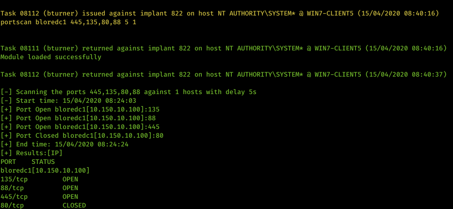 Rob Maslen’s (@rbmaslen) PortScanner module has been added to PoshC2 and integrated into the C# implant so we can now fully utilize this in engagements where the PowerShell implant may get detected.