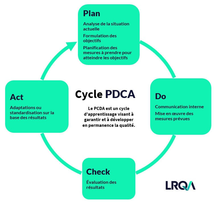 La norme ISO 9001 exige un processus d'amélioration continue, dont la mise en œuvre suit généralement le cycle PDCA (Plan-Do-Check-Act). Il est intéressant de noter que cela est pris en compte dans la structure de haut niveau :