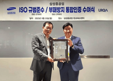 정진택 삼성중공업 대표이사는 "이번 통합인증으로 준법,윤리경영을 위한 삼성중공업의 노력과 능력을 국제적으로 인정받았다." 라며 "고객 및 이해관계자에 대한 준법 신뢰도를 지속적으로 제고하고 글로벌 수준의 준법 경영 문화를 정착시켜 ESG경영을 강화해 나가겠다."라고 전했다.