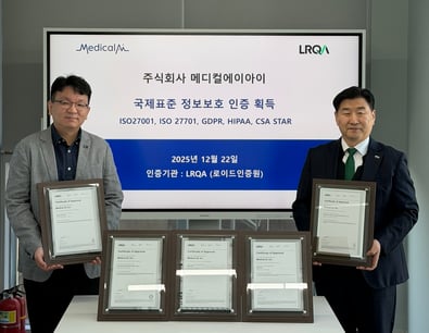 12월 22일 메디컬에이아이의 ISO 27001 (정보보안경영시스템), ISO 27701 (개인정보보호경영시스템) 인증을 비롯한 ,CSASTAR,HIPAA, GDPR, 검증 획득을 축하하는 인증수여식이 진행되었습니다.
