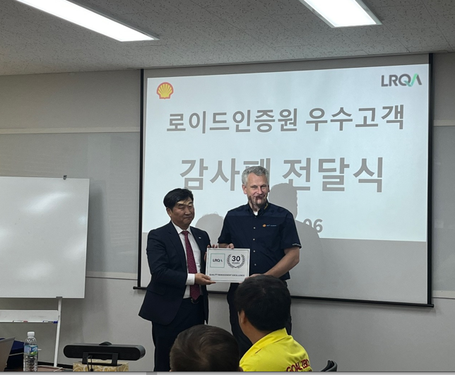 특별히 올해는 두 인증서( ISO 9001:2015, IATF 16949:2016, ISO 14001:2015) 인증에 대한 각각 20주년과 30주년 되는 발행을 맞이하여 부산에 위치한 한국쉘석유 대회의장에서 한국쉘석유 라머스 예룬 피터 대표이사와 LRQA KOREA 이일형 대표이사를 비롯한 관계자들이 함께 자리한 가운데 환경 품질을 위해 지속적인 노력에 대해 축하 및 기념하는 자리를 함께하였습니다.