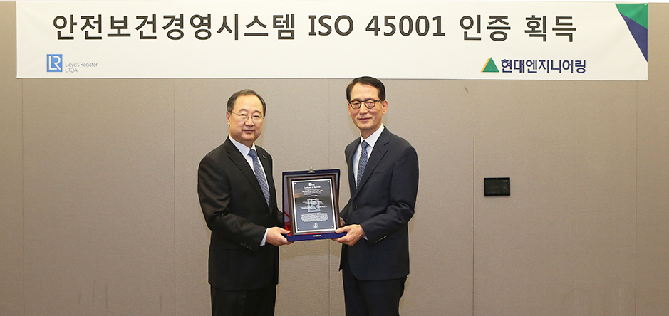 이에 따라 현대엔지니어링은 건설 현장을 포함한 엔지니어링 전 분야에 대해 ISO 45001 표준에 따라 안전보건 경영체제를 구축하여 이행하고 있음을 국제적으로 인증받게 되었습니다.